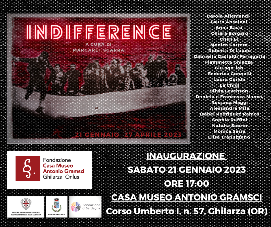 In occasione dell’anniversario della nascita di Gramsci (22 gennaio 1891), Sabato 21 gennaio 2023 alle ore 17:00, nella Casa Museo Antonio Gramsci, Ghilarza (Corso Umberto I, n. 57), si inaugura la mostra collettiva Indifference, ideata e curata da Margaret Sgarra.