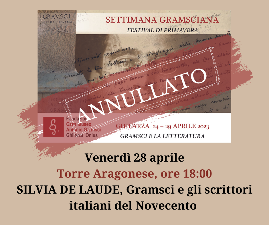Evento annullato – Silvia De Laude: “Gramsci e gli scrittori italiani del Novecento”