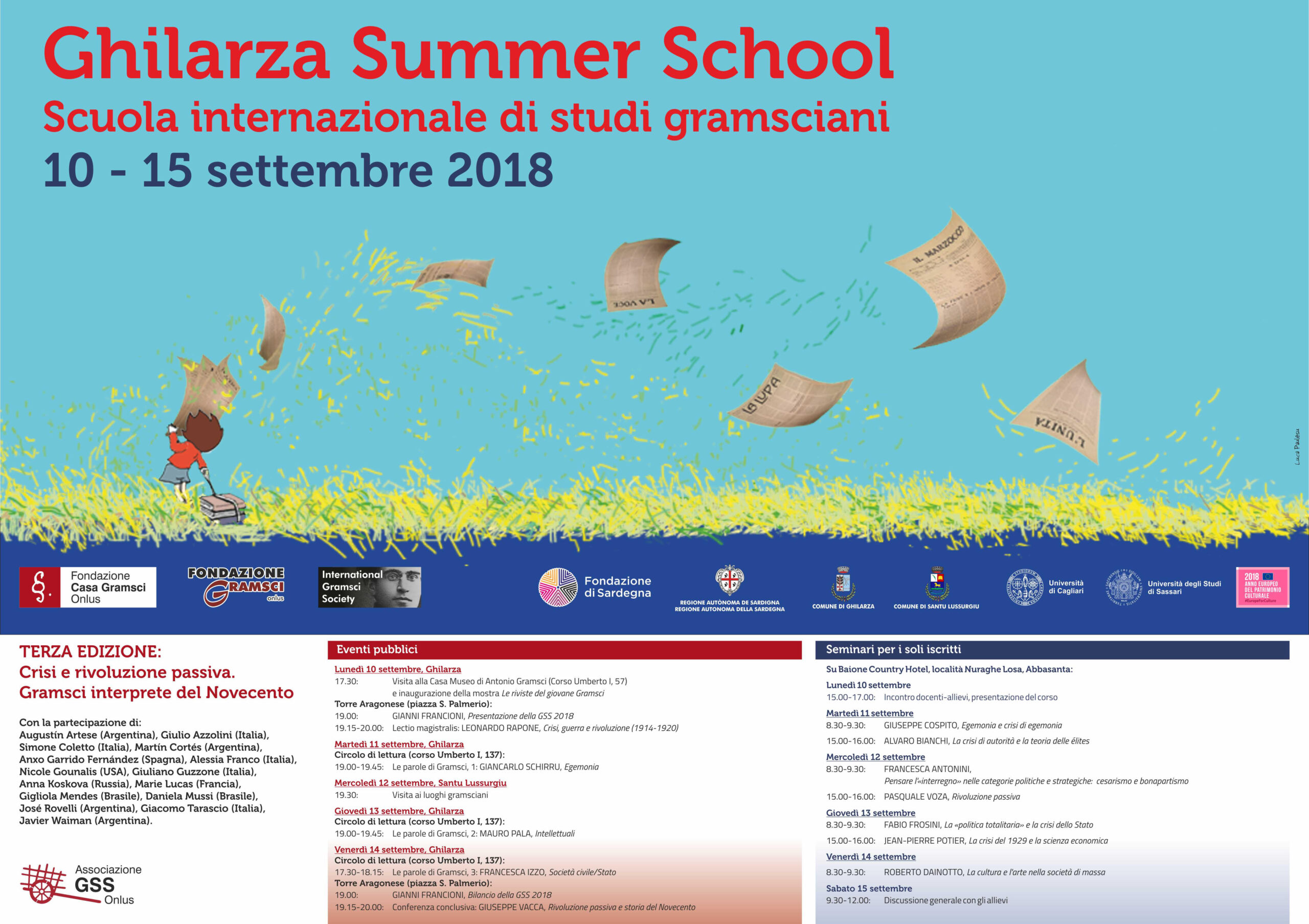 La Terza Edizione della Ghilarza Summer School, dal titolo Crisi e rivoluzione passiva. Gramsci interprete del Novecento,  prenderà avvio lunedì 10 settembre alle ore 18.00 presso la Casa Museo Antonio Gramsci con l’inaugurazione della mostra Le riviste ritrovate: la formazione di Gramsci in Sardegna (1907-1914), a cura di Luca Paulesu.